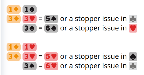 | 3M! | Ask for stopper, SOL 7+ suit or STR 4+♣ 4+♦ |